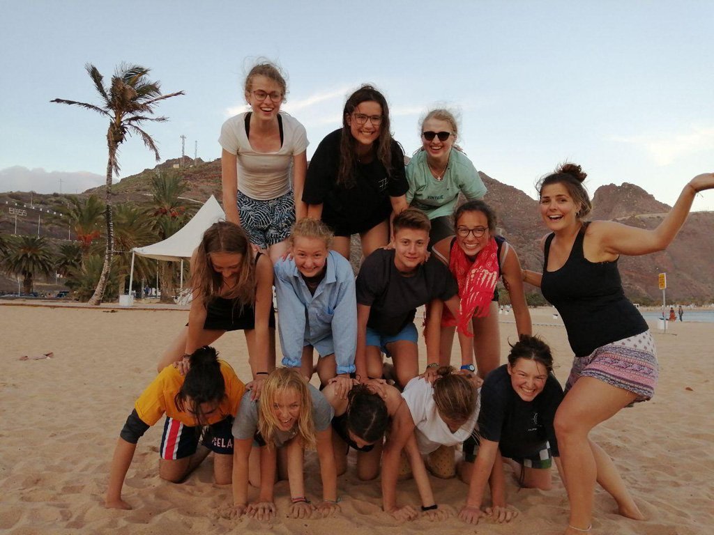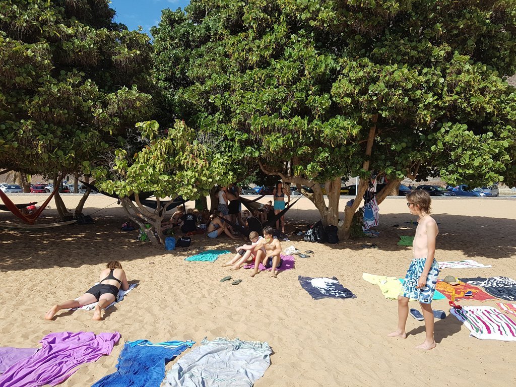 Heute kam dann der Proviant. Und es gibt wieder Mehl an Bord!!! Denn in Zukunft können wir nicht so weiter machen wie jetzt. Aktuell gibt es gekauftes Brot, das ist aber auf dem Atlantik nicht dauerhaft möglich. Zur Belohnung für die oben beschriebenen Strapazen ging es für alle die wollten noch ein letztes Mal an den Strand. Heute, aufgrund von für uns doch eigentlich eher leichten Wind, inklusive Gratis-Peeling. Dadurch waren dann ohnehin schon alle sandig, was sehr zu einer sportlichen Einlage einlud. Diese haben wir mit Akrobatik und Gruppenspielen sehr lustig ausgenutzt.