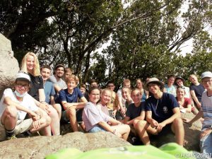 Nachdem wir noch einen Eistee getrunken hatten und noch einmal bei dem Bäcker waren, war es Zeit für die Rückfahrt. Das hieß auch, dass wenn wir wieder da waren, ich direkt in die Backschaft musste, aber es war absolut lustig und wir haben ein bisschen in der Küche gezaubert und noch zu ganz normalem Essen einen großen Salat mit selbstgemachtem Salat-Dressing gemacht. Nachdem sich alle satt gegessen hatten, gab es noch eine Überraschung für uns: Die Ersten haben ihre Briefe bekommen, konnten anfangen diese zu lesen und hatten ein kleines bisschen Zuhause, was bei fast allen zu dem ein oder anderen Tränchen geführt hatte. Wir in der Küche hatten aber keine Freizeit, sondern mussten die Küche fertig machen, denn sobald wir fertig waren, haben die ersten 2 Gruppen ihre Bilder von der Stadt-Rallye vorgestellt. Das war sehr lustig und hat einige nach dem kleinen Heimwehe durch die Briefe wieder sehr aufgeheitert. Dann gab es die beste Ansage überhaupt und zwar, dass es so warm in der Nacht wird, dass wir draußen schlafen dürfen, was alle sehr sehr fröhlich gestimmt hat und sofort fast alle mit Iso/- und Hängematten ans Deck getrieben hat. Ich glaube, ich kann für alle sprechen, wenn ich sage, dass es echt schön war auf dem Vorschiff als große Gruppe zu schlafen. Wie angesagt war die Nacht viel viel wärmer als die letzten und gleichzeitig war der nachfolgende Tag auch noch wärmer, was uns aber egal war, da wir unseren zweiten Tag am Strand hatten.