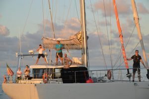 Wieder an Land zu kommen… man kann es nicht fassen, dass wir nach einem Monat segeln endlich wieder Land sehen und erst recht wieder darauf laufen. Man merkt schon, wie abgetrennt wir vom Rest der Welt sind. Wir haben es geschafft, uns ein kleines Universum herzustellen, in dem wir uns jeden Tag auf das Hiersein konzentrieren und das ist uns super gelungen. Ich wollte auch von dem gestrigen Tag erzählen, weil es echt etwas Besonderes war.