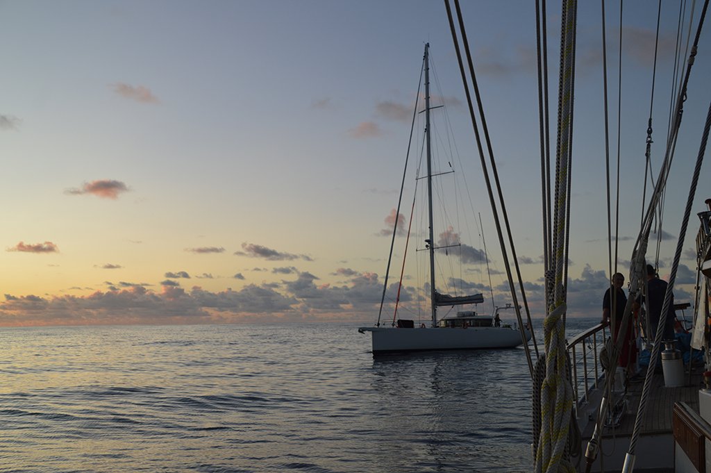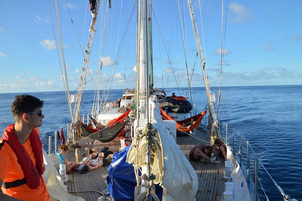 Gestern hatten wir die Chance mitten auf dem Atlantik das Schiff Eugen Seibold (a Sailing Yacht for oceanic research) zu treffen, auf dem Dr. Ralf Schiebel (Gruppenleiter am Max-Planck-Institut für Chemie) uns viel über die Forschungsarbeiten, die auf der Yacht vorgenommen werden, erzählte. Der Schwerpunkt des Projekts ist die Mikropaläontologie. Hierbei wird der Ozean in Zusammenhang mit dem Klima bzw. auch dem Klimawandel genau betrachtet. Man untersucht die verschiedenen Wasserschichten bis auf 3.000 m Tiefe und hierbei spezielle Lebewesen und Bakterien, die in diesen Schichten leben. Zusätzlich werden spezielle Messinstrument eingesetzt, die den Gehalt verschiedener Gase in der Atmosphäre messen (Sauerstoff, Stickstoff, CO2 und so weiter). Wollt ihr mehr über das Projekt wissen (und weil ich so nett bin ??)? Hier ist eine Webseite: www.wernersiemens-stiftung.ch