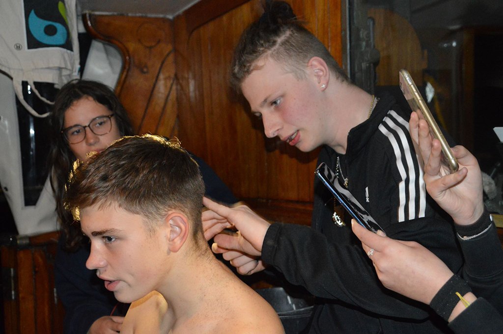 Ein weiterer Tag an Bord geht zu Ende. Wir befinden uns mittlerweile westlich von Gibralter und sind auf direktem Weg nach Teneriffa, denn auch heute hatten wir wieder sehr guten Wind, mit dem wir aktuell ca. 6-10 Knoten fahren. Voraussichtlich werden wir dort um den kommenden Montag herum ankommen. Heute hat sich der Tagesablauf im Vergleich zu den letzten Tagen nicht groß verändert. Die Wachgruppe trat wieder fleißig ihre Wache an, die Unterrichtsgruppe genoss Norberts Unterricht und Emil durfte mit „großer“ Begeisterung den Hitzeschutzanzug anprobieren, um für einen Fall in der Feuerrolle zu üben. – „Wir machen Emil jetzt zum schönsten Mann an Bord“, so Norbert.
