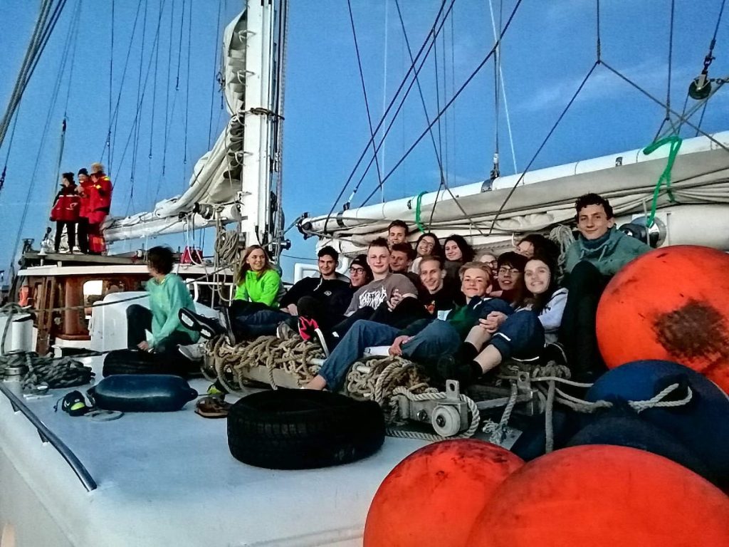Bei gutem Segelwetter erreichten wir Olpenitz. Segel bergen und Anker werfen verliefen (fast) problemlos. Der Abend verlief bis jetzt entspannt und alle bereiten sich auf eine zweite (Nacht-) Ankerwache vor. Positiv zu bemerken ist, dass trotz „stürmischer“ Verhältnisse noch keiner die Fische füttern durfte. Ja es ist tatsächlich niemand seekrank geworden. Aber wir vermuten, dass sich dies noch ändern wird.