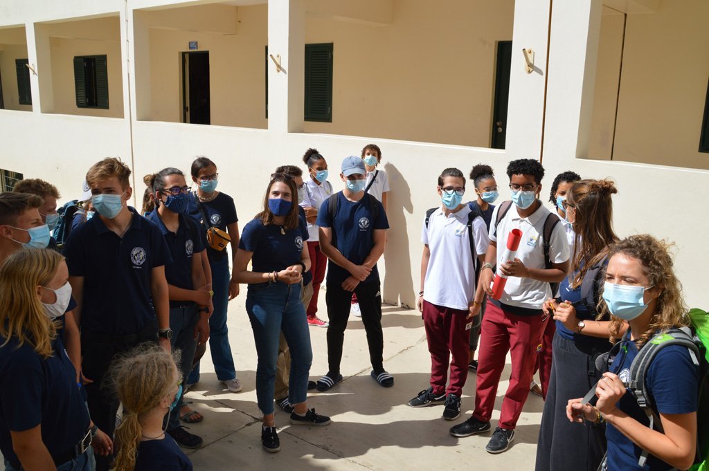 Zusätzlich durften Hippo und ich unser perfekt am Vorabend in so 1-2 Stunden (nur mit dem Reiseführer) vorbereitetes Referat über die Kap Verden halten. Heute hatten wir dann gleich um 10:00 Uhr ein Treffen mit der hiesigen Escola Salesiana. Auf dem Schulgelände angekommen war ich ziemlich überrascht davon, dass es dort so sauberer und ordentlicher ist, wie ich es sonst von keiner anderen Schule kenne. Während der Führung durch die Schule wurde uns ein echt nicer Asphalt-Bolzplatz gezeigt, auf dem ich ziemlich gerne ein bisschen gekickt hätte (wir hatten aber leider weder Ball noch Zeit). Zum Schluss unseres dortigen Aufenthalts konnten wir uns noch länger mit sechs Schülern*innen, die uns in den nächsten Tagen öfter bei unseren Programmpunkten begleiten werden, unterhalten. Ich habe mich länger mit Thiago, der ziemlich gut Englisch spricht, über unsere doch ziemlich verschiedene Schulalltage und das Leben auf den Kap Verden unterhalten.