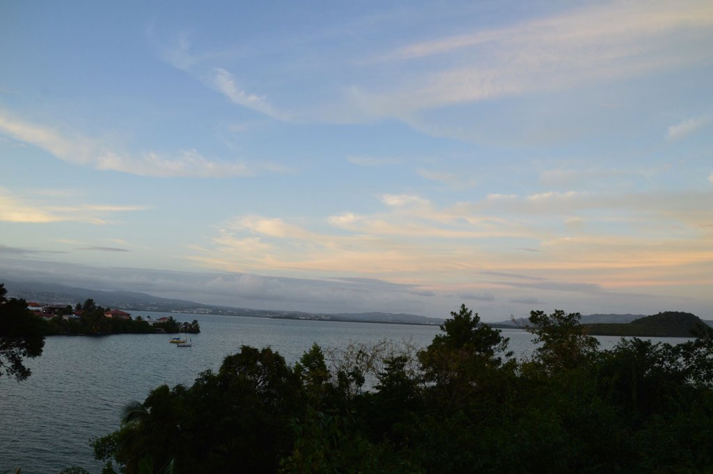 Nachdem wir ein Stück gelaufen waren, wurden wir von einer Frau angesprochen, die, wie sich im Anschluss herausstellte, die Ladenbesitzerin war. Sie hat uns ein paar Sachen rausgegeben, die wir uns angucken konnten. Anschließend ging es mal wieder zum Supermarkt, wo wir uns mit genug Schokolade für die nächsten Wochen eingedeckt haben. Wie am Samstag haben wir ein kleines Picknick gemacht. Mit Blick auf die Bucht haben wir uns einen Brownie geteilt, Musik gehört und über Martinique geredet. Da um 18:00 Uhr das erste Dinghi zurück ging, mussten wir uns ein wenig beeilen, um noch pünktlich zu sein. Die Chefköche Julius, Clara und ich sollten als erstes wieder hinüber zur Johnny, um das Abendessen vorzubereiten. Im Kühlschrank hatten wir noch unglaublich viele Reste vom Mittagessen. Also haben wir alles auf den Herd gestellt und gewartet bis es köchelt. Sehr viel mehr mussten wir auch nicht machen, nur ein bisschen Brot und Gurken schneiden. Das wars auch schon fast mit Montag. Ich habe mich nach dem Essen mit Selmo zusammen in die Brücke gesetzt um diesen Bericht anzufangen. Leider sind wir aber noch lange nicht fertig.