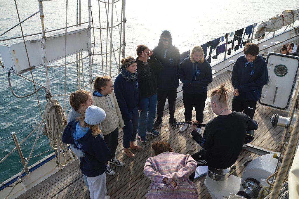 Der gestrige Tag fing an wie jeder andere, sofern man das hier an Bord überhaupt sagen kann, denn kein Tag gleicht hier dem anderen. Dennoch haben wir während der Atlantiküberquerung so eine Art Alltag gefunden: ein Tag Wache, am nächsten Tag Schule, dann wieder Wache und so weiter und zwischendurch mal Backschaft… Sonntag findet allerdings kein Unterricht statt, weshalb die Unterrichtsgruppe Zeit für andere Dinge hatte, wie zum Beispiel Referate vorbereiten, Wichtelgeschenke machen, oder einfach mal auf dem Vorschiff liegen und die Sonne genießen. Hier und da hört man aus Musikboxen Musik oder das „Känguru“, welches ganz schön beliebt hier an Bord ist. Nach dem Mittagessen durfte die Unterrichtsgruppe dann Plätzchen backen, denn es war ja schließlich 4. Advent! Uns war freigestellt, was und wie viel wir backen, weshalb jeder, der wollte, irgendwie seinen eigenen Teig zusammen geknetet hat. Es wurde zwar ein klitzekleines bisschen chaotisch in der Messe und 300 Grad Ofentemperatur war wohl für ein paar Plätzchen auch zu viel, weshalb sie mit leichten „Röstaromen“ aus dem Ofen kamen, aber dennoch hatten alle ganz viel Spaß und es gab lecker Plätzchen zum Kaffee. Es ist schwer zu sagen, was genau für Plätzchen es waren, da viele nach „Frei Schnauze“ gebacken haben, aber es waren auf jeden Fall welche mit Mandeln, Erdnüssen, Kirschen und sowas wie Zimtsterne dabei. Zwischendurch sind wir alle rausgestürmt, denn es hieß „Land in Sicht!“ und tatsächlich: das erste Mal Land nach über zwei Wochen weit und breit nur Wasser. Alle haben sich mies gefreut und die Stimmung war super.