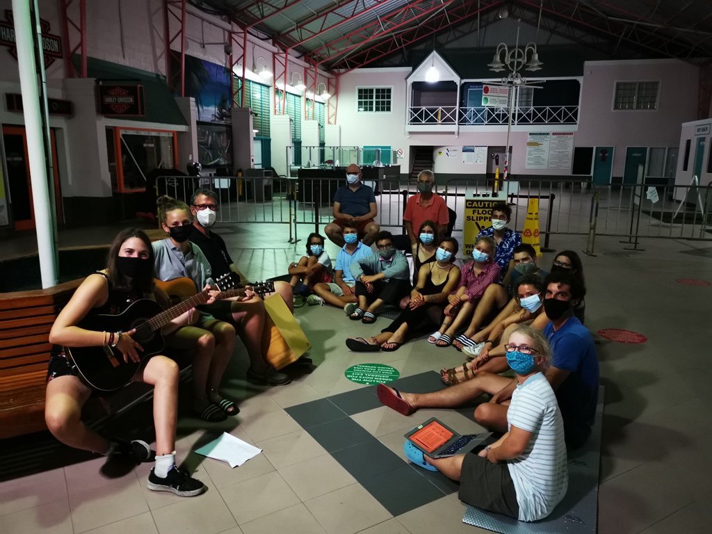 Es wurde auch von Lana im Kreuzfahrt-Terminal eine passende Andacht für Weihnachten in der Karibik gehalten (mehr dazu findet ihr im Anhang). Dazu haben Jasmin und Valerie einen Ohrwurm in uns allen durch ihre wunderschönen harmonischen Melodien erklingen lassen. Gegen Ende des Abends haben wir dann von Santa Claus persönlich alle unsere Wichtelgeschenke bekommen. Meins war ein Wecker. Ob mir damit mein Wichtel irgendwas mitteilen möchte? Zum Schluss haben wir dann gemeinschaftlich alles abgebaut und sind dann nichts ahnend wieder eingeschlafen. Ich persönlich habe dieses Weihnachten eine Stimmung erlebt, wie ich sie vorher nicht gekannt habe. So habe ich mich einfach von der schönen Festtagsstimmung anstecken lassen und habe sogar die Tische gewischt und in der Backschaft beim Abwasch geholfen. Im Laufe des Abends hat sich diese inspirierende und feierliche Stimmung nicht mehr verändert.
